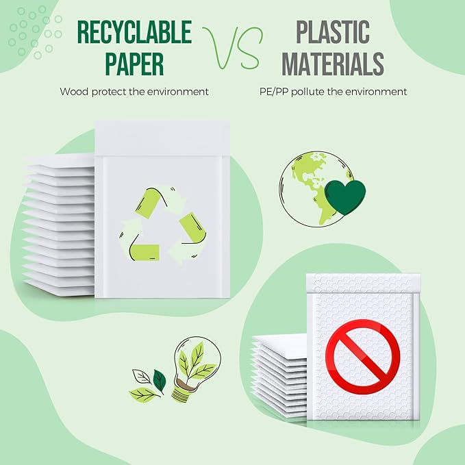 - 【Simple Peel & Seal 】Simply peel and fold over to seal each package safely and securely.Bubble envelopes are equipped with a strong self-sealing adhesive strip that cannot be easily torn apart and tamper-resistant. Moreover,the smooth surface of the white kraft bubble mailers can be written, labelled and stamped.