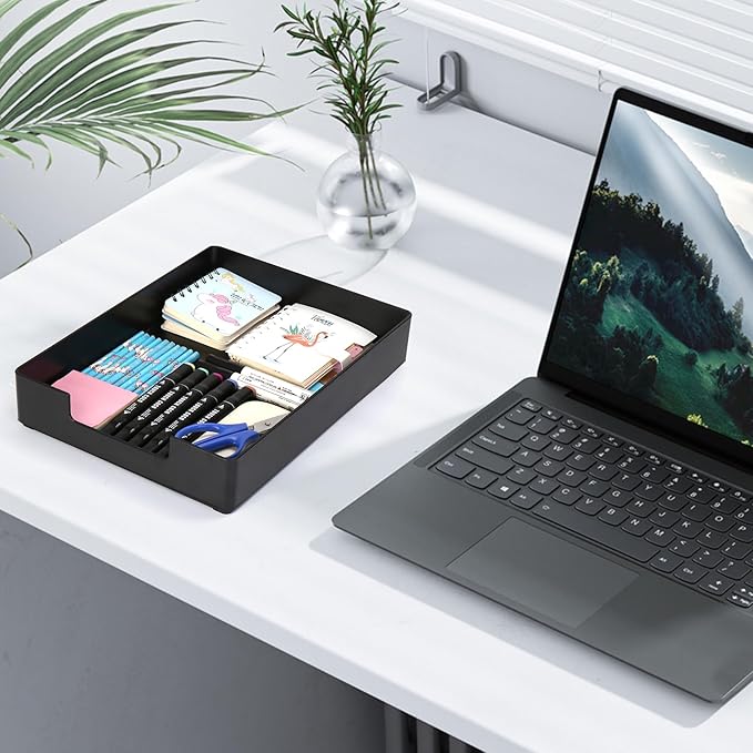 - Large Size Non-slip Plastic Paper Tray-It comes with 4 silicone pads on the bottom to sit steady in your drawer or on the desk.Large enough to satisfy multuple usage needs for different size items . Size:L*W*H=13x9.6x2.2inch. big enough suitable for A4 Sized file,document,file folder or books .