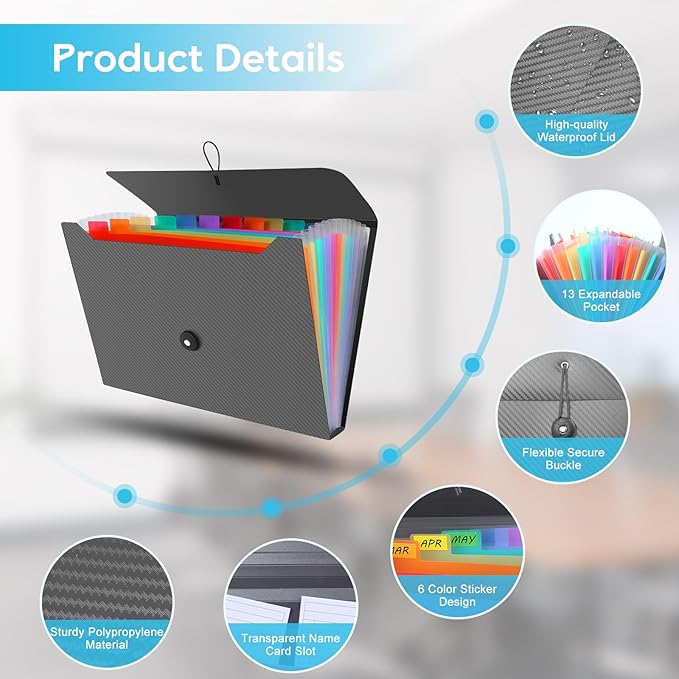 - 【COLORFUL DESIGN】Our expandable file folder features rainbow-colored inner pages and small colored labels for easy classification, making it both functional and visually appealing