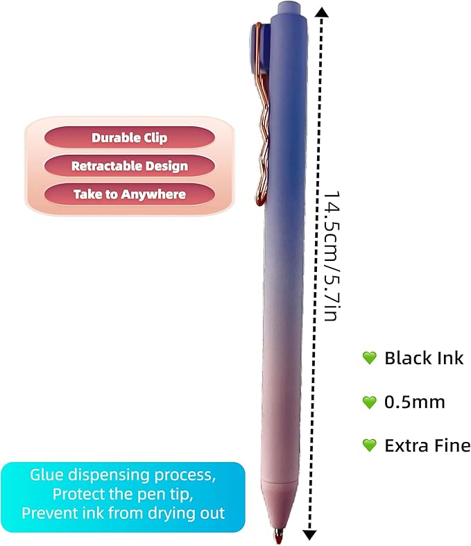 - Long-lasting Usage: Equipped with a large capacity pen core, these pens offer a longer usage time, making them perfect for both daily use and professional settings.