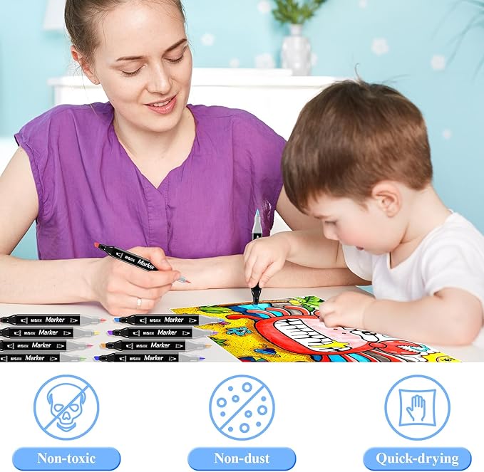 - Dual tip design: Each alcohol marker has a double-ended design, with a fine point and broad point.The art markers feature both a chisel tip for detailed lines and a fine tip for precise detailing and colorings.