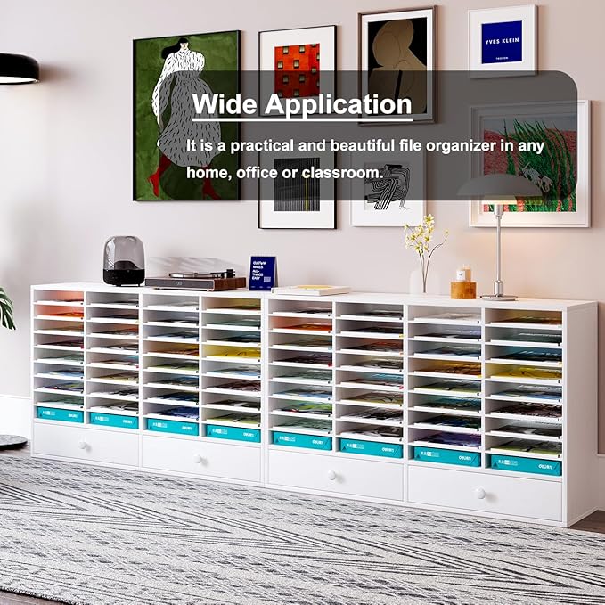 - ▶Amazing Storage Capacity and Space-saving. The literature organizer has 10 Layers and 4 columns, a total of 36 slots and 2 drawers. It can help you sort, store and organize literature, magazines, comic books, files, student assignments, binders, catalogs, diaries, papers and documents on your desk, counter or floor quickly and easily and get you valuable workspace back