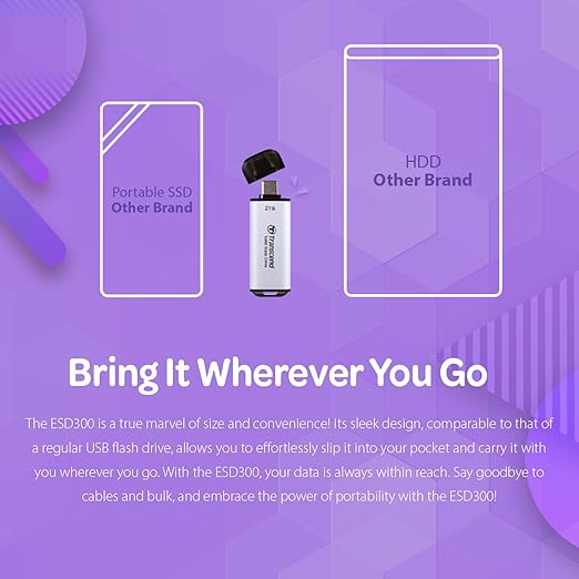 - Compact and Portable Design: Comparable in size to a standard USB flash drive, the ESD300 is lightweight and easily fits into your pocket, making it convenient for on-the-go data storage.