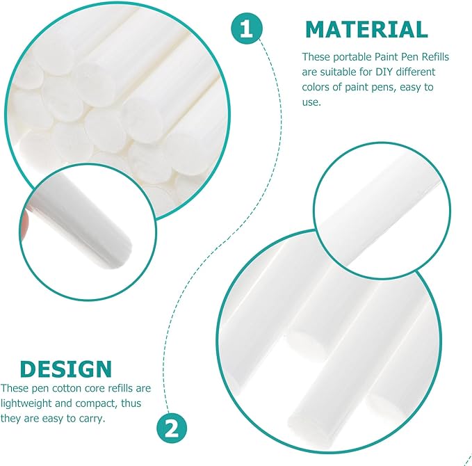 EXCEART 200 Pcs Marker Cotton Core Markers Marker Diy Refills Marking Pen Refill Multifunctional Paint Pen Refills Universal Paint Pen Refills White Pvc Eyeliner Student Filling