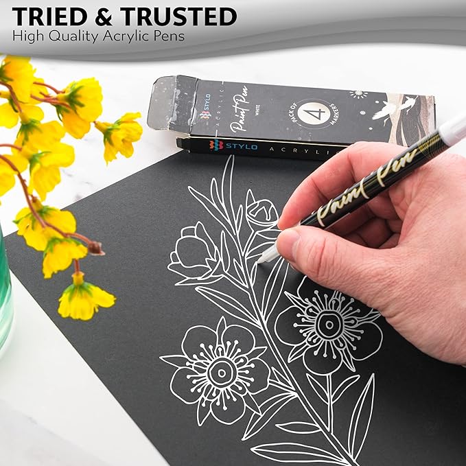 Stylo 8 Count Acrylic Metallic Pens - White Paint Pens - Fine Tip Permanent Acrylic Metallic Paint Markers for Rock Painting, Glass, Wood, Ideal for Arts and Crafts (Pack of 8, White)
