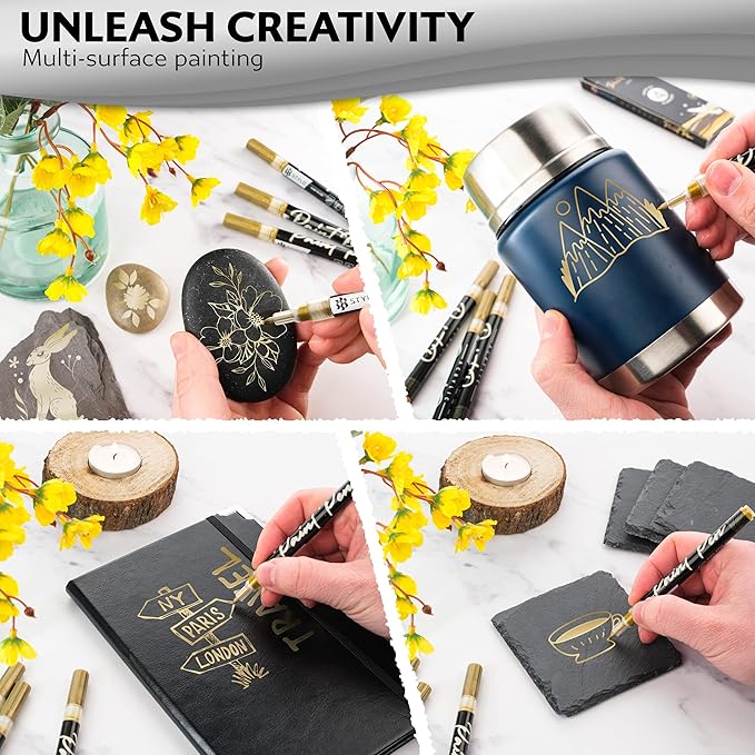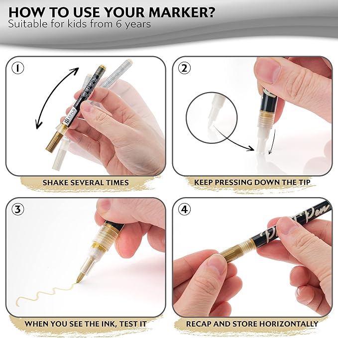 - VERSATILITY – 8 x Gold marker mettalic pen suitable to work on wood, fabric, glass, ceramic, stones and other surfaces