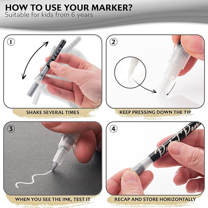 - EASE OF USE – Simply shake well before use and remember to recap once used and store horizontally for longer life of the markers. CAUTION: Ink may bleed hence it is suggested to use on a thicker paper to avoid stains