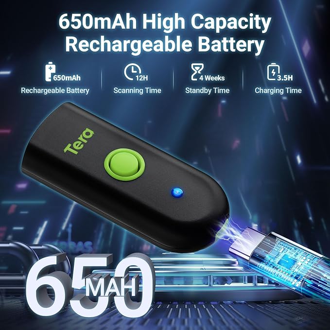 - 【Mini Pocket 1D Scanner】Completely mini pocket size and 39g/1.4oz ultralightweight, making Tera barcode scanner to be a better choice for portable use. Anytime you want to collect data, just connect it with your device via Bluetooth or use the storage mode.especially for book store, online store, sales shop, warehouse, etc place.