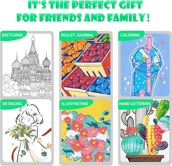 - 144 UNIQUE COLORS:The high-quality water-based ink seamlessly blends, creating beautiful coloring effects without worrying about smudges or uneven coloring. The rich and vivid colors inspire artistic creativity and allow for easy layering and mixing. Suitable for various art activities, including designing animals, flowers, patterns, drawing, sketching, and calligraphy.