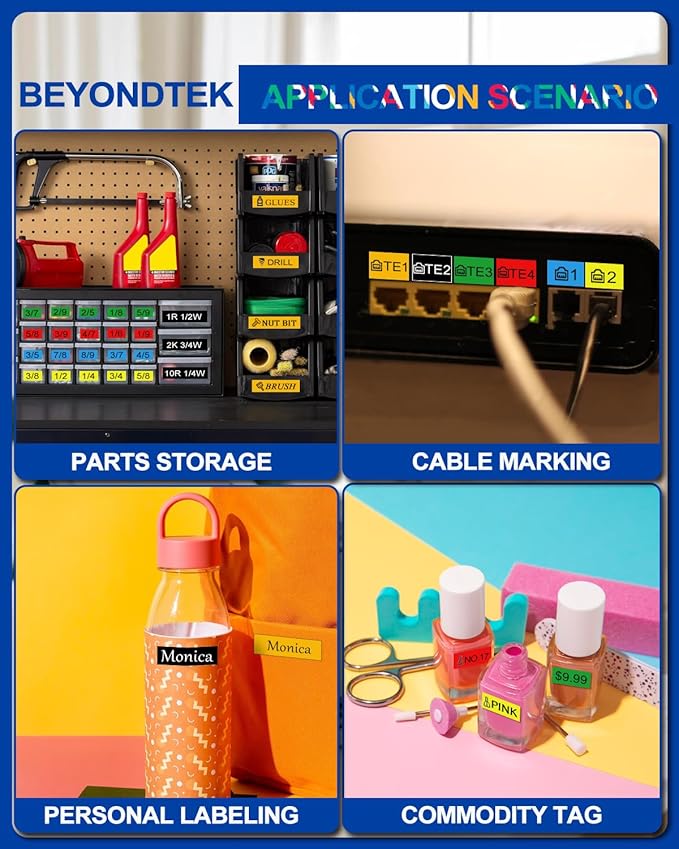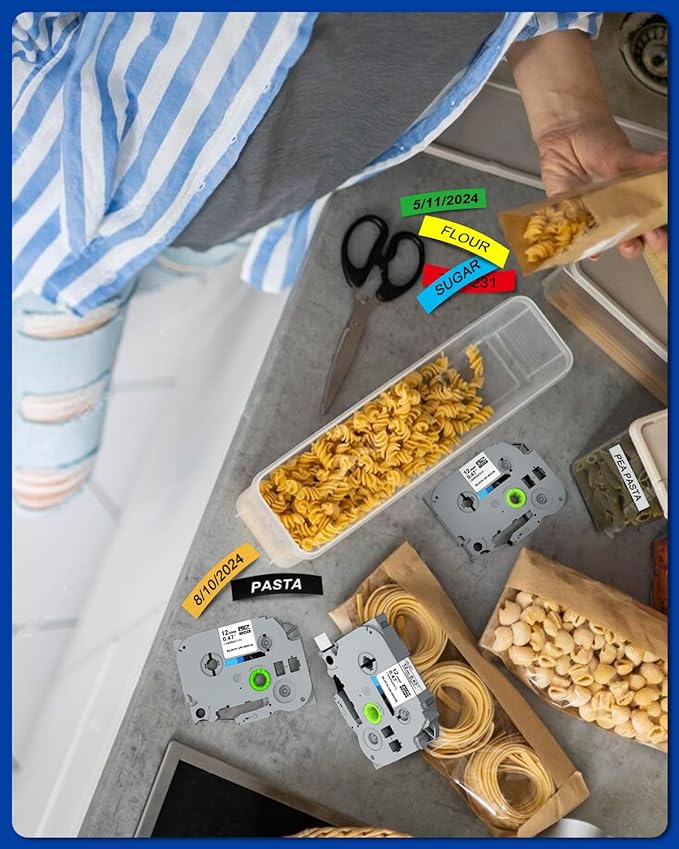 - 【PTouch Label Tape Wide Applications】-Use ▶ Item Differentiation, Date Labeling, Operation Tips, Price Labeling, Personal Items Labeling, DIY Blessing Language and more.-Scene ▶ Home, Office, School, Hospital, Government, Hotel, Restaurant, Factory, Bank, Laboratory, Warehouse, Farm, Repair Shop,Stores, Supermarkets and more.