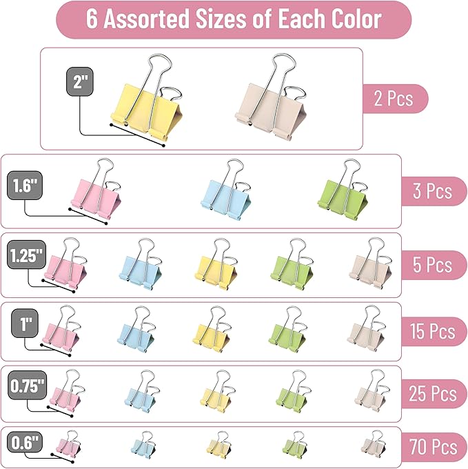 - Crafted in pastel shades, these binder clips add a touch of aesthetic appeal to any office or study space, combining functionality with a modern, stylish look.