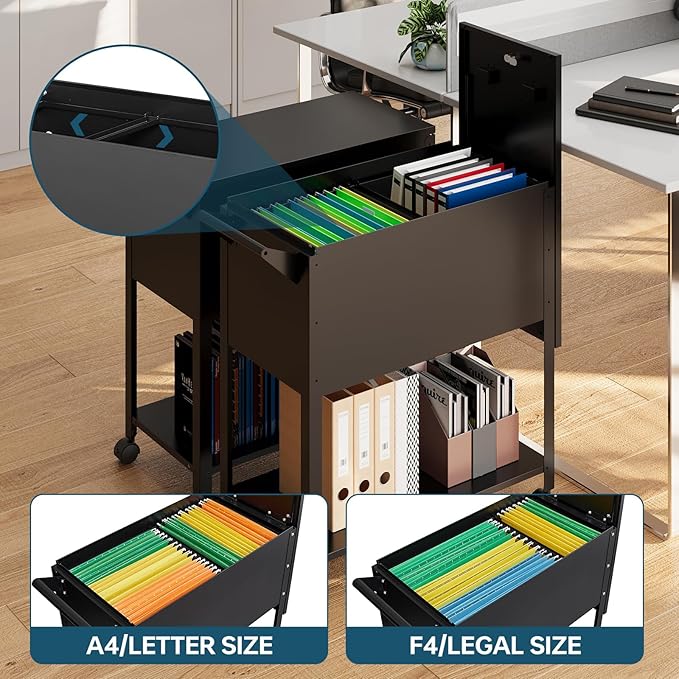 - 【Metal Mobile Files】The File cart is made of durable steel construction. It's designed to accommodate letter and legal-size hanging folders. Extra deep tub file with bottom shelf for more storage space. Sliding Top viewing design allows easy filing and retrieval of stored documents.