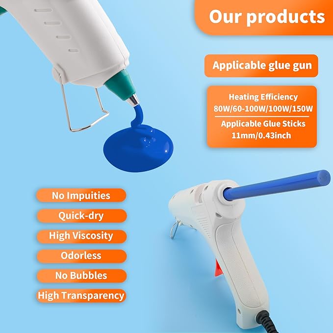 - 【Wide Application】hot glue gun sticks are perfect for crafting, card making, scrapbooking, carton sealing, phone case beauty, electronic appliances, gluing projects, waxing seal stamp, general repairs,creating arts, holiday crafts, decorations, home, office, school DIY and toys.