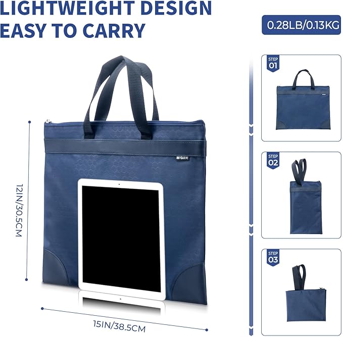 - 【EASY TO CARRY AND ACCESS】Designed with double handles for balance and a wide opening for easy file access, this document bag makes organizing and retrieving books or papers quick and efficient.