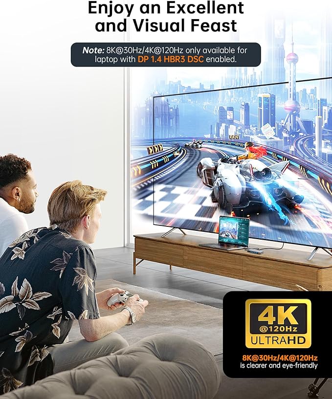 - 【8K Laptop Docking Station 14 in 1 】Plug and play docking station. With this USB C hub multiple adapter you can easily extend your laptop from one USB C/thunderbolt 3/type C port into 14 ports: 1*8K DP, 2*4K HDMI, 1*VGA, 4*USB 3.1(5Gbps), 1*USB C 3.1, 1*100W PD, 1*SD &1*TF card reader, 1*3.5mm Audio, 1*Gigabit Ethernet port. This hp docking station can make your work more efficient.