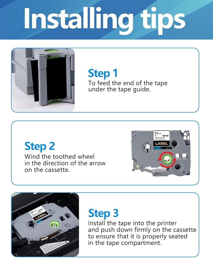 - Versatility: The tze 24mm tape with standard adhesive that is designed to stick to a variety of surfaces, including organizing files and folders, labeling storage containers, making it ideal for labeling items both indoors and outdoors