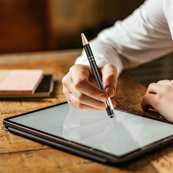 - 【Versatile Design】: The two in one design of touch screen stylus provides more functions. Easily take notes on paper or phone/tablet screens. In addition, it does not require charging, saving you time and trouble.