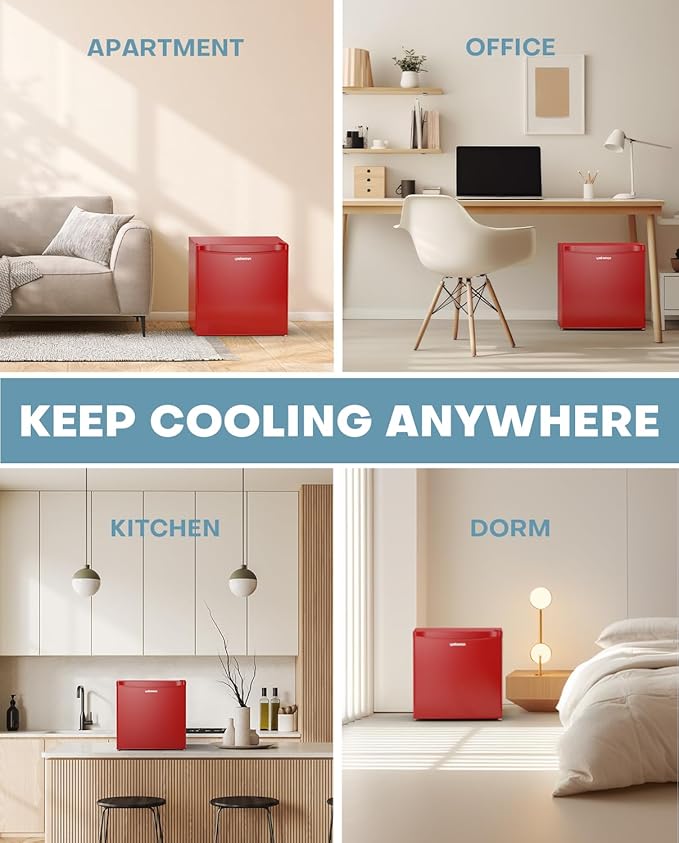 Upstreman 1.7 Cu.ft Mini Fridge with Freezer, Dorm Essentials, Adjustable Thermostat, Energy Saving, Low Noise, Single Door Compact Refrigerator for Dorm, Office, Bedroom, Red-FR17
