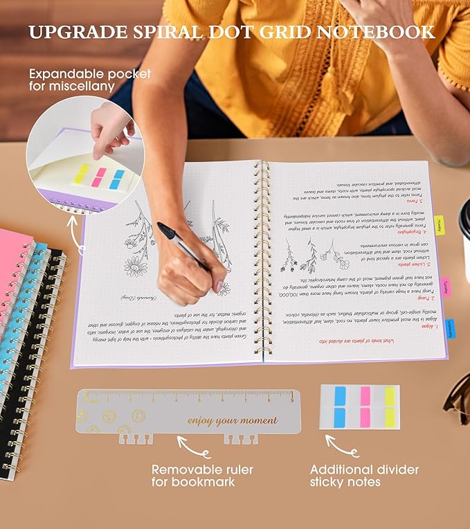 - 【A4 Dotted Spiral Journal Notebook】 Large a4 size 8.5"x11" dotted notebook, standard 5mmx5mm dot grid spacing to keep your notes organized, creating a smooth writing experience. The professional sturdy water-resistant plastic hard cover will protect your bullet notebooks to last for years, which has oil-resistant and anti-bending properties, effectively protecting the internal paper of the journal and provides a comfortable writing surface.
