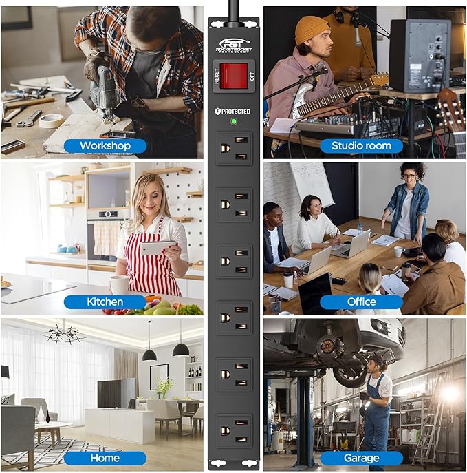 - [Versatility] - Makes it an ideal choice for a wide range of settings, including homes, garages, and workshops. Whether you're working on a DIY project in your garage, or running power tools and machinery in your workshop, this metal power strip can handle it all.