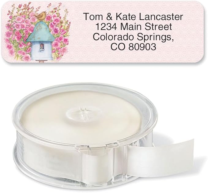 - Each roll of customizable address labels includes 500 stickers on a clear acrylic dispenser for quick and easy application