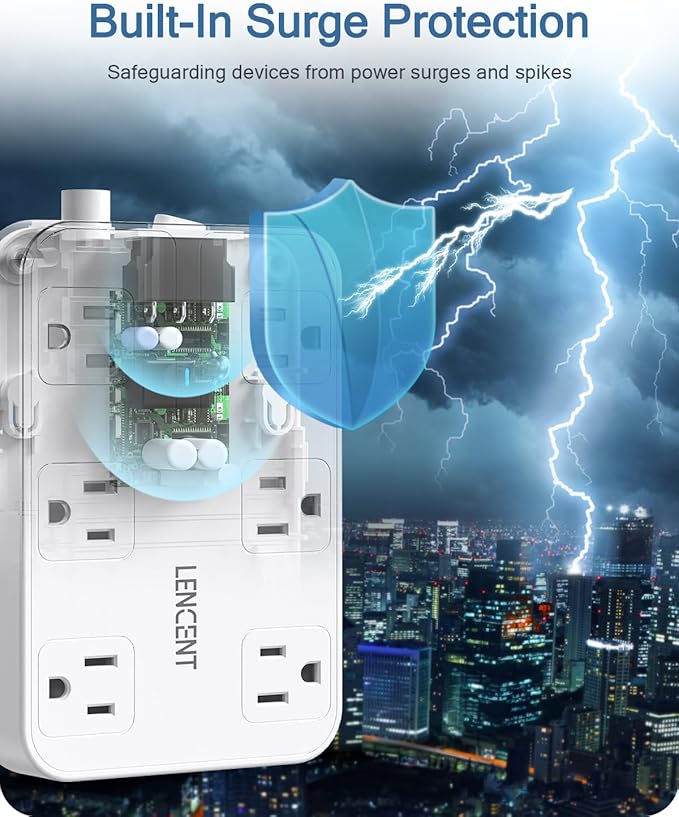 - Superior Safety: 1050J surge protector and 13A integrated circuit breaker with FCC certificated and fire-resistance PC shell, protect electronic product from surge, spike and overload. The reliable overload switch will trip off automatically to prevent your devices and your home from over-voltage, overload, over-current, short-circuit and etc. Polarized plug provides a measure of safety for the appliances and house wiring to be aligned in terms of polarity. It is perfect for older houses.