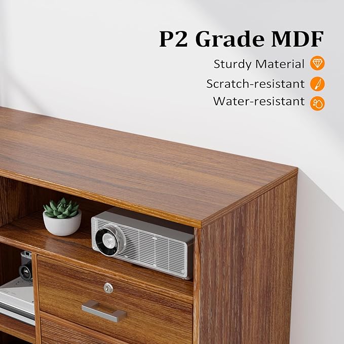 VINGLI Wide 4 Drawer Lockable Rolling File Cabinet with Open Shelves - Walnut Wood Lateral File Cabinet Printer Stand for Home Office, Letter Sized