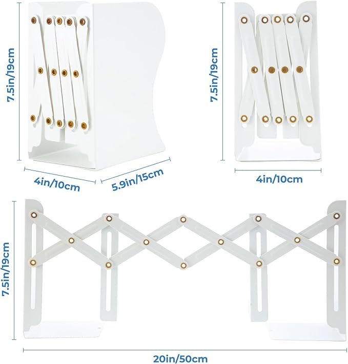 - 【Adjustable Design】-Our bookends have an adjustable design, the adjustable range is 4-20in, allowing you to easily adjust the distance between the bookends to fit different sizes of books or magazines.
