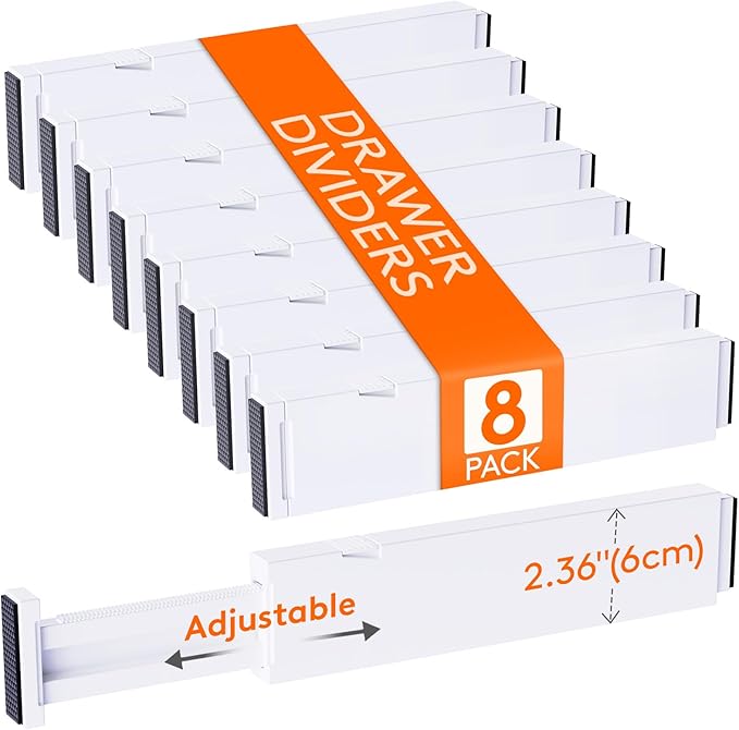 - Expandable and Adjustable: With a width of 0.8 inches, a height of 2.36 inches, and an adjustable length ranging from 11 to 17 inches, our drawer dividers fit most drawers and cabinets, keeping your items organized and drawers tidy