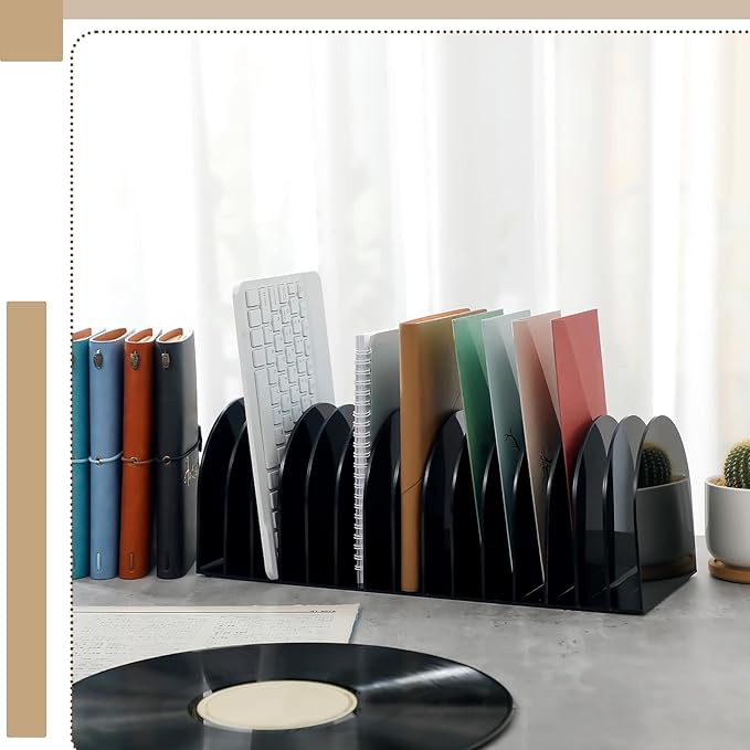 - Use with Confidence: desktop file folder organizer is made of quality black acrylic material, sturdy and reliable in your application, black appearance makes it easy to find what you need, while keeping your desk simple and stylish; Please remove the protective film before use