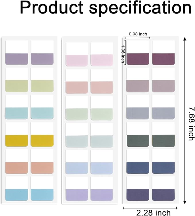 - 360PCS Tabs: The tabs size of a single sticky label is 1 "x1.1". These page tabs are easy to write, and meet writing requirements. The page markers have 18 colors, 360PCS in tatal, which is better to distinguish the focus and facilitate classification.