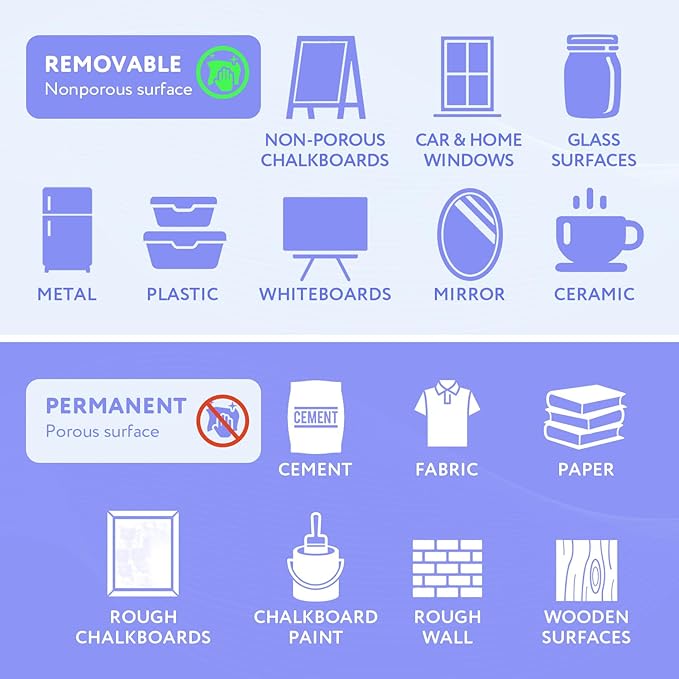- Versatile Use: The chalk markers use the dustless, non-toxic formula is both eco-friendly and safe for home use. Whether you're a teacher, mom, student, artist, or bistro owner, these chalk markers are what you're looking for