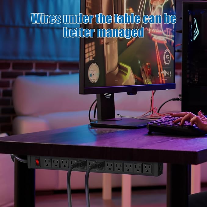 - 12 Outlet Mountable Power Strip: 12 outlets for more of your needs, with a 10 foot 14AWG power cord and 15A high current, max power: 60Hz/125V/15Amp/1875W. Package includes 4 mounting screws.