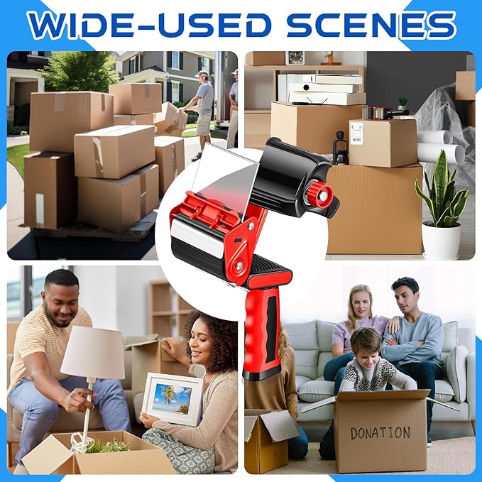 - Effortless Operation: our packaging tape dispenser heavy duty is designed for smooth and fast application with one hand; With its compact sized handle, easy glide mechanism, and wide application usage, you can seal packages and boxes quickly and effortlessly, saving both effort and time in busy packing environments