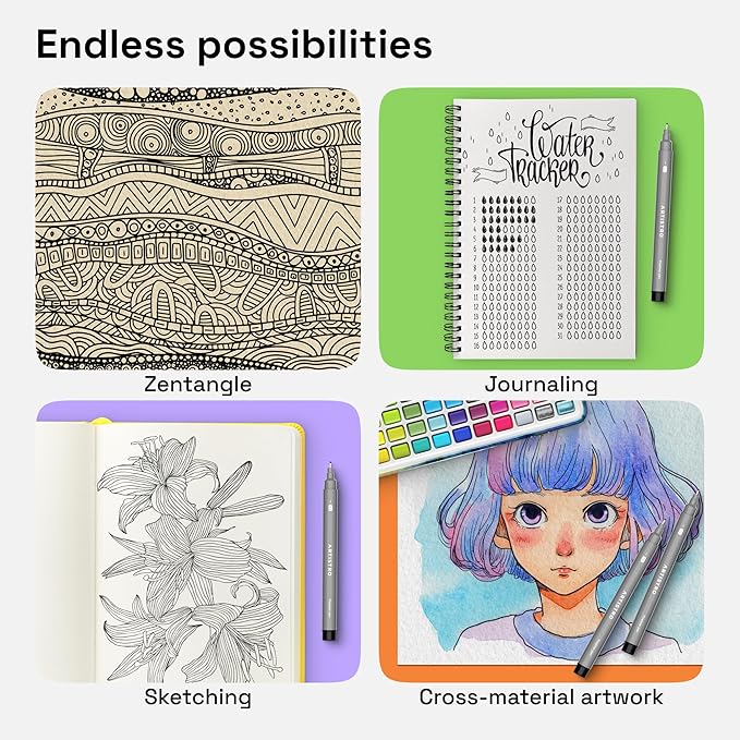 - Wide Use: Compatible with mixed media art with either pencil, watercolor, alcohol marker, or highlighter. These fine tip colored pens are great for artists, designers, writers, architects, illustrators, and calligraphers. Each fine tip marker is built for journaling, sketching, manga, technical drawing, doodling, and more.