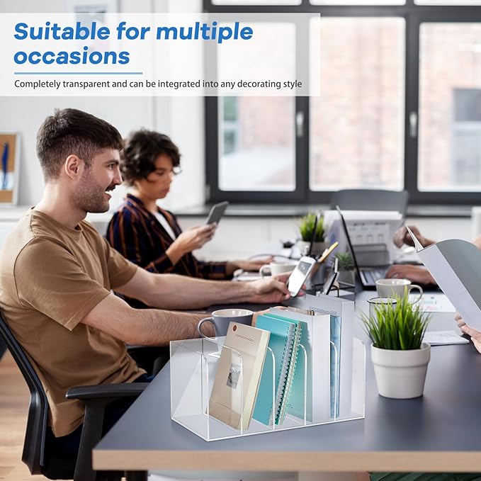 - Large Capacity: you will receive 2 sets of acrylic desk organizers with 5 vertical compartments; The zoning design can cater to your daily work needs, making your storage organized, and you can put folders, books, magazines, notebooks and other items in them