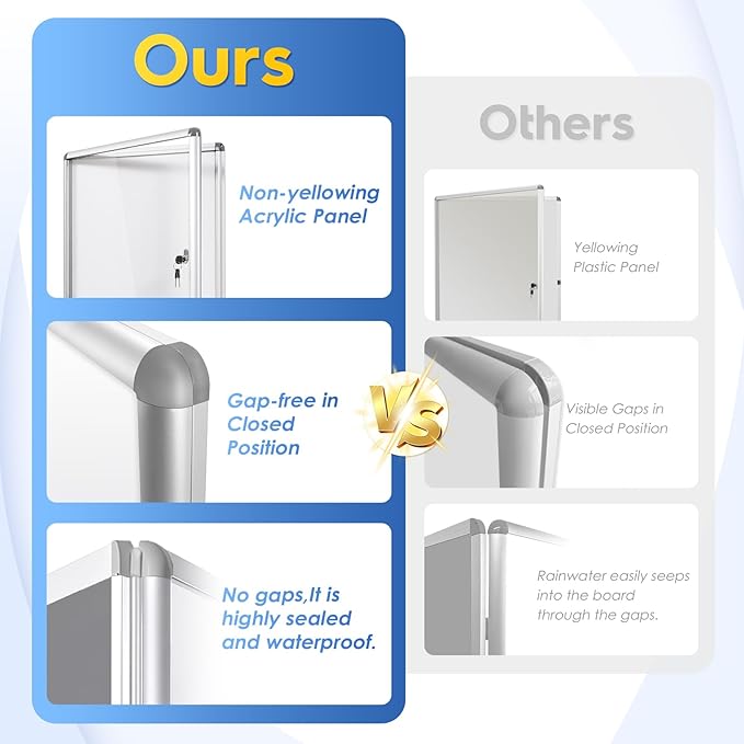 - Secure and Protected Display —Lockable acrylic doors and key mechanisms ensure that important information are kept safe from the elements, theft, or tampering