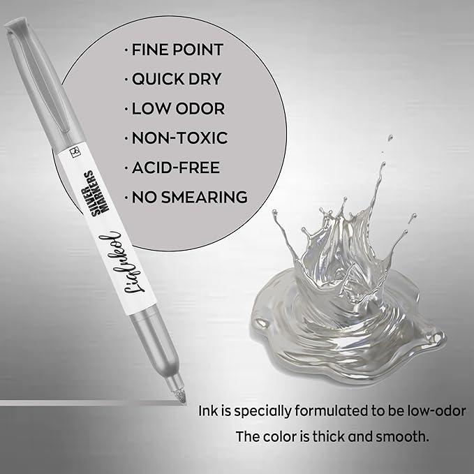 - Safety guarantee : LiqInkol Silver Metallic Markers are lightweight and ergonomic. Along with having a fiber tip, water-based ink, and being non-toxic, odorless, and environmentally friendly. Vibrant colors, smooth writing, quick-drying, strong coverage, and fade resistant. The ink will not bleed through the paper to help you create your art.