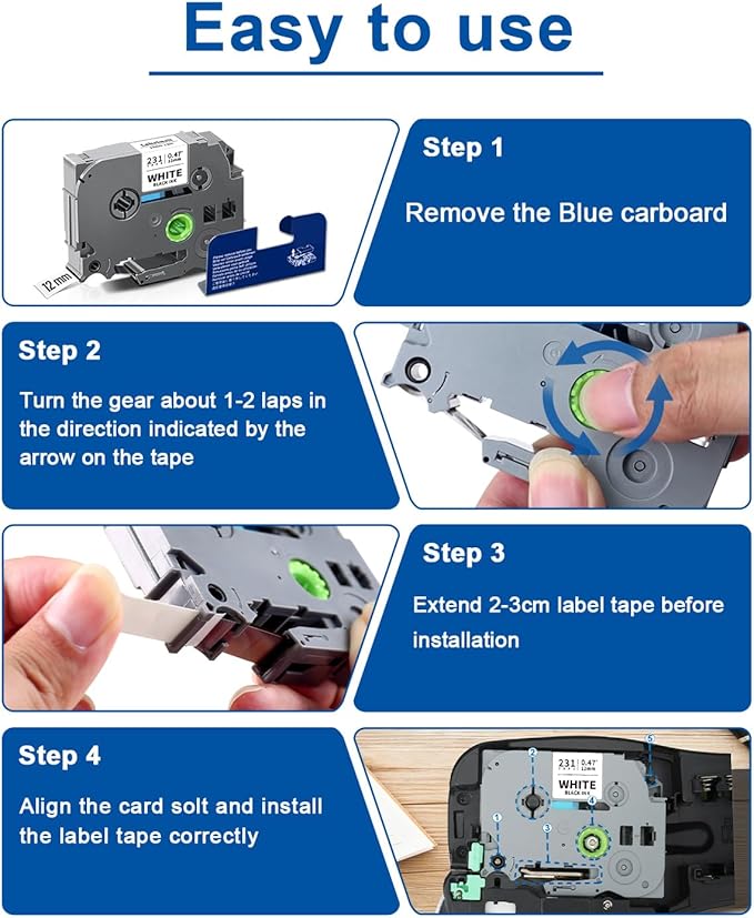 - Easy to use: These 9mm 0.35 Laminated White tapes comes with split backing design, the backing tape is split lengthwise in the middle for easy peeling, and all of Labelwell TZe TZ Tapes with the feature of water resistant, temperature resistant, fade resistant, oil resistant, abrasion resistant, chemical resistant, and no sticky residue