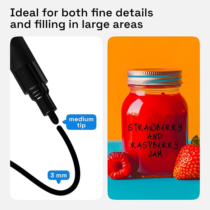 - Multiple Surfaces: Use these oil paint pens as oil markers for plastic and glass or as oil based fabric markers for clothes. Each black pen is water-resistant. They’re also good for leather, vinyl, or epoxy resin. And the nibs are solid, even on rocks!