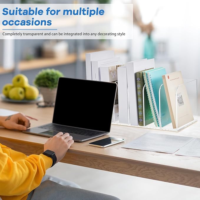 - Large Capacity: you will receive 1 set of acrylic desk organizers with 6 vertical compartments; The zoning design can cater to your daily work needs, making your storage organized, and you can put folders, books, magazines, notebooks and other items in them