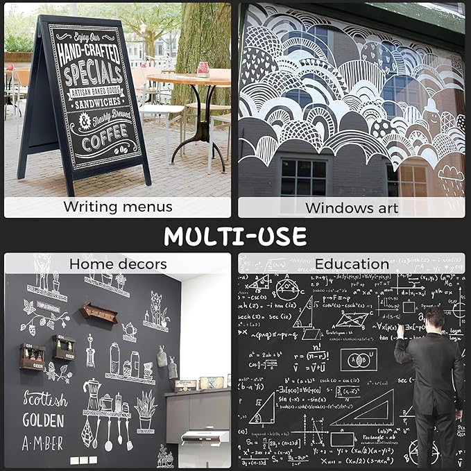 - WIDELY USED: These wet & dry erase markers are suitable for writing on any primed chalkboard, glass or other non-porous surfaces, including black dry erase boards, chalkboard stickers, chalkboard contact paper, tiles, LED boards, whiteboards, plastics and metals. It is also great window markers and dry erase markers for chalk lettering, sewing, decorating wedding signs, milestone boards, menus.