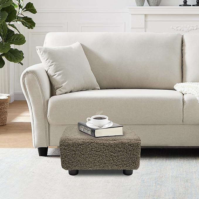 CAROLMADE Small Foot Stool Ottoman Footstool with Legs Under Desk Footrest for Living Room Bedroom and Office, Soft Coffee