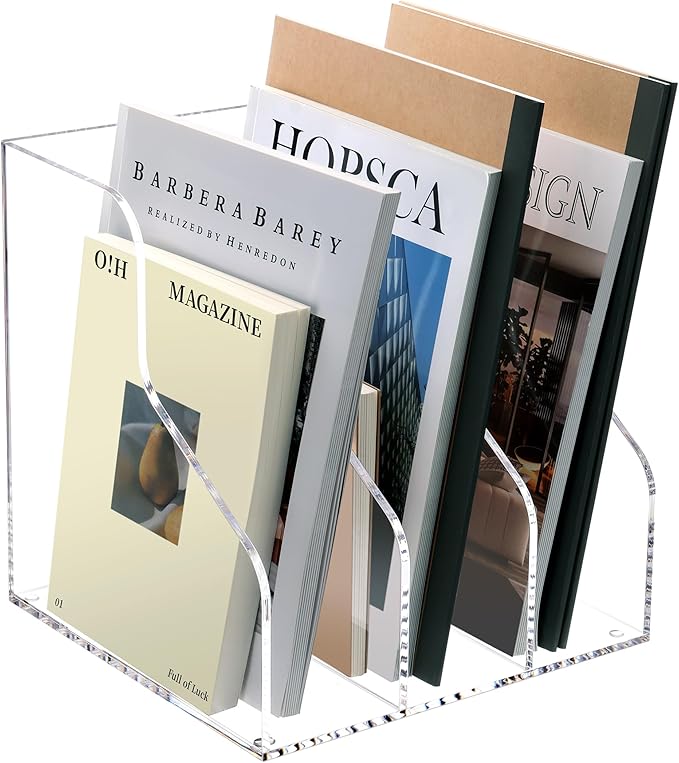 - 【Sturdy Acrylic Desk Organizer]】Desktop file organiser is made of heavy duty and durable clear acrylic material, high clarity and sturdy.This file sorter for desk is ideal for storing books,magazines,file folders, document, papers, notebooks, etc, perfect solution for office, school classroom organization, and home storage.
