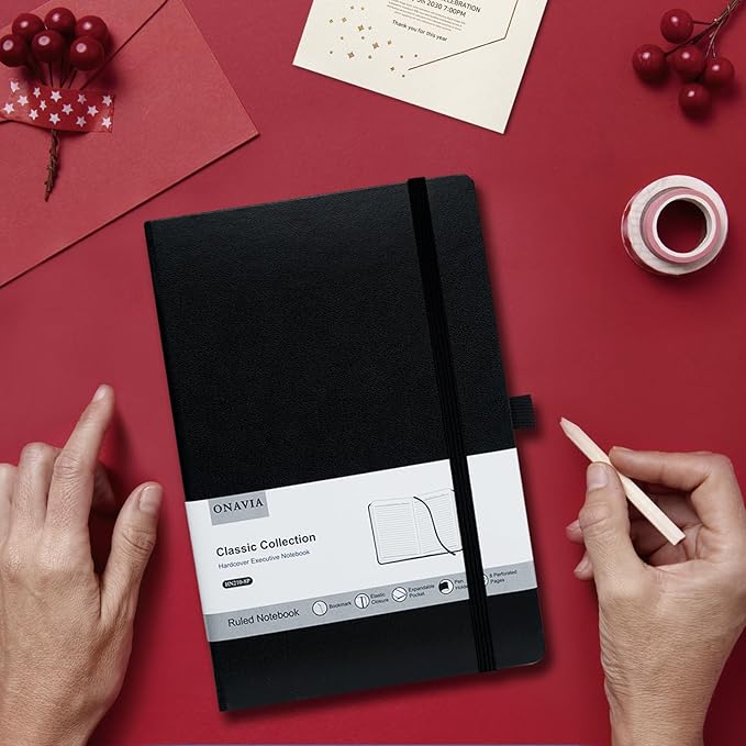 - 【Premium Quality Pages】ONAVIA's 100 Gsm thick, ivory paper pages in a hardcover ONAVIA notebook is perfectly textured for writing with a ballpoint pen, fountain pen, or pencil without bleed-through