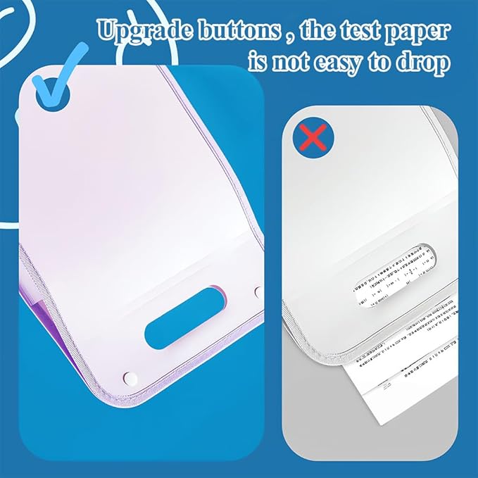 - MADE TO LAST: Made of durable and waterproof PP material, it can resist tearing and is not easy to deform. Double buttons on both sides are fixed to prevent files loss. The edge is rounded and wrapped to ensure the safety of use.