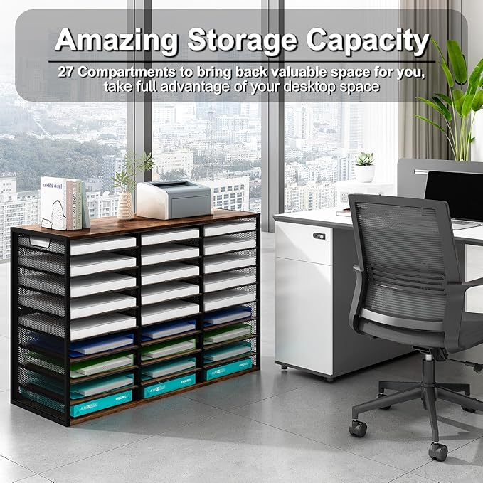 - ▶Amazing Storage Capacity and Space-saving. The literature organizer has 27 compartments, which can help you sort, store and organize literature, magazines, comic books, files, student assignments, binders, catalogs, diaries, papers and documents on your desk or counter quickly and easily and get you valuable workspace back
