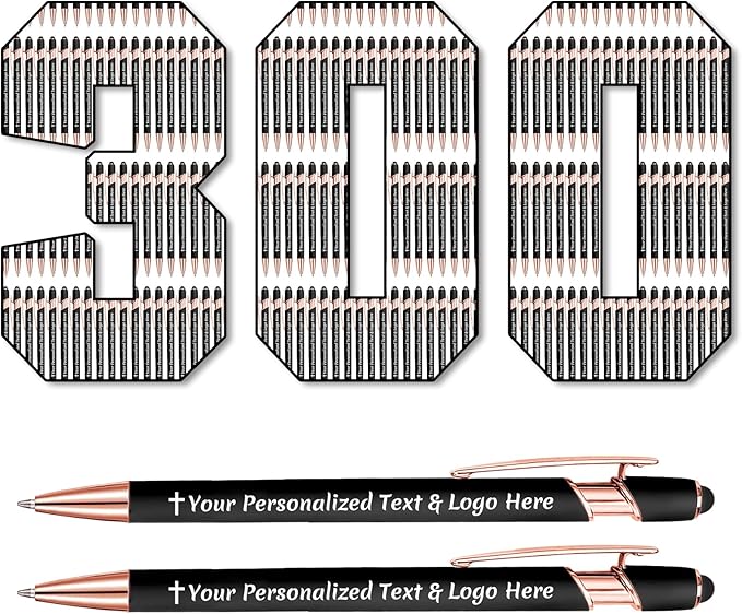 STREADVE 300 Personalized Custom Pens Engraved Writing Pen with Name Logo, Customized Promotional Items Stylus Pen Gifts for Men Women Realtor Nurse Wedding Business, Black