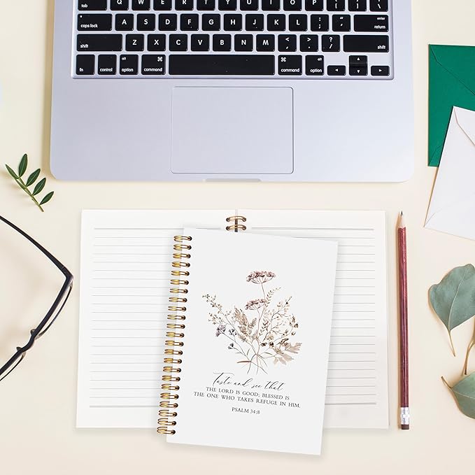 BearCake bible notebooks for note taking,Christian Notebook,Christian Gifts for Women,Taste and See That the Lord is Good Floral spiral bible with note taking space,spiral bible 5.5x8.3
