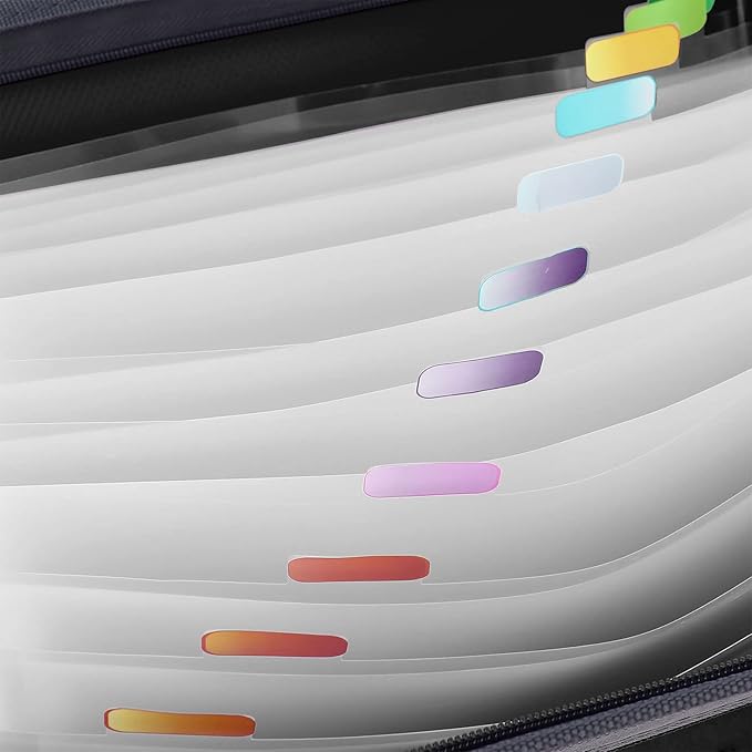 - Zipper Front Pouch & Colorful Labels: The front zipper pocket is perfect for putting pens, name cards, sticker paper and other frequently-used items. Accordion file folder comes with 27 pcs colorful sticky labels, which can help to distinguishing each pocket documents, convenient and quickly find out your needed files.